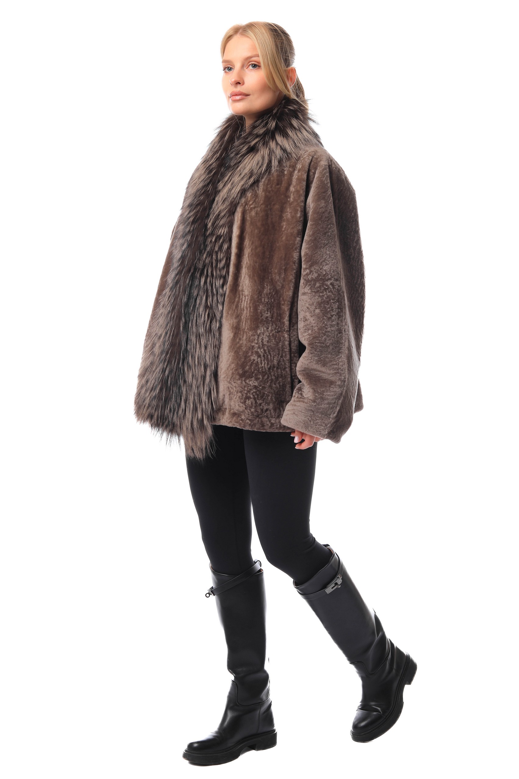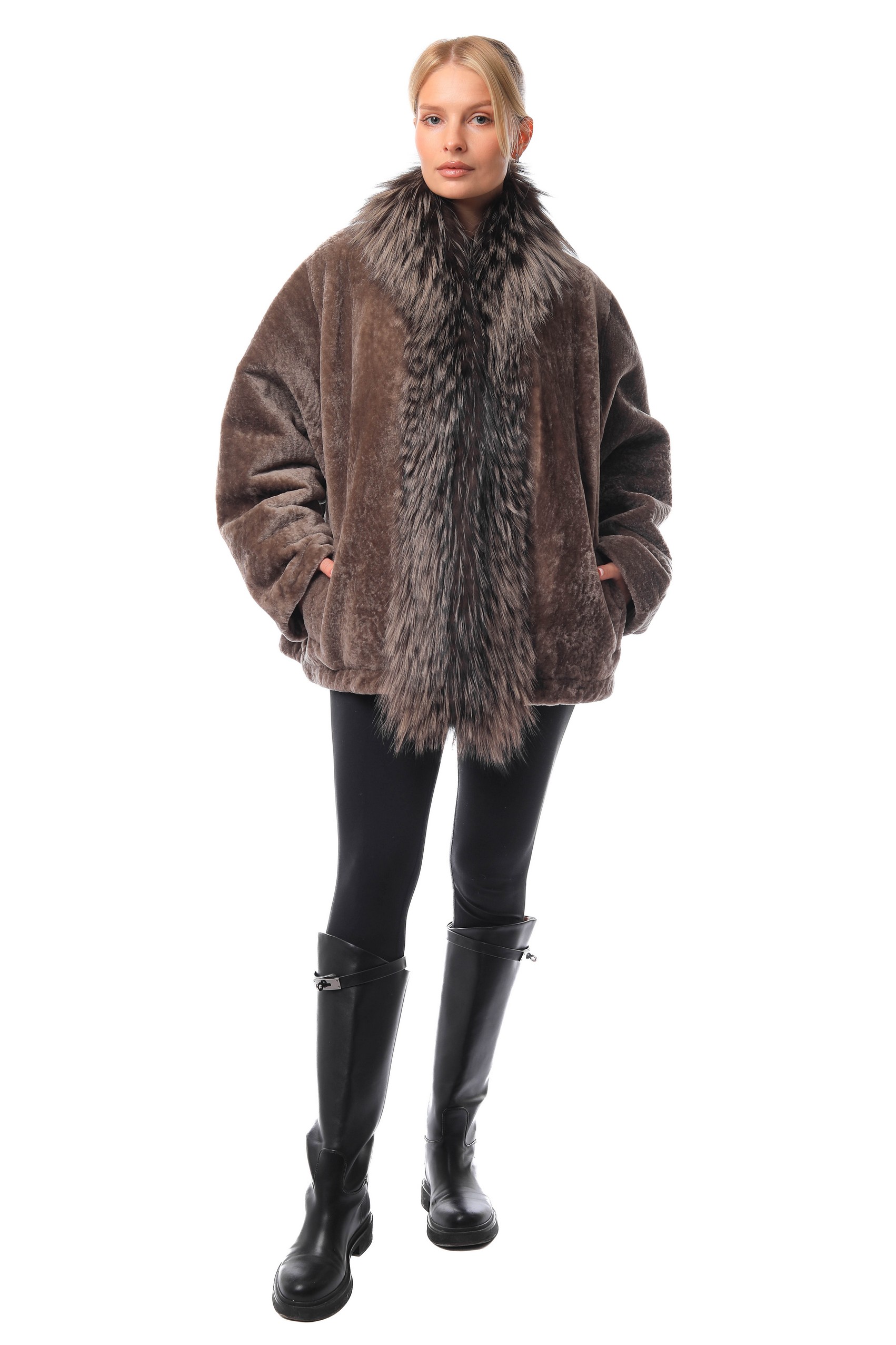 Полупальто из натуральной овчины Жен LINDI WEST 7529 Натуральный мех - овчина, отделка - мех лисы, утеплитель - синтепон крашенная